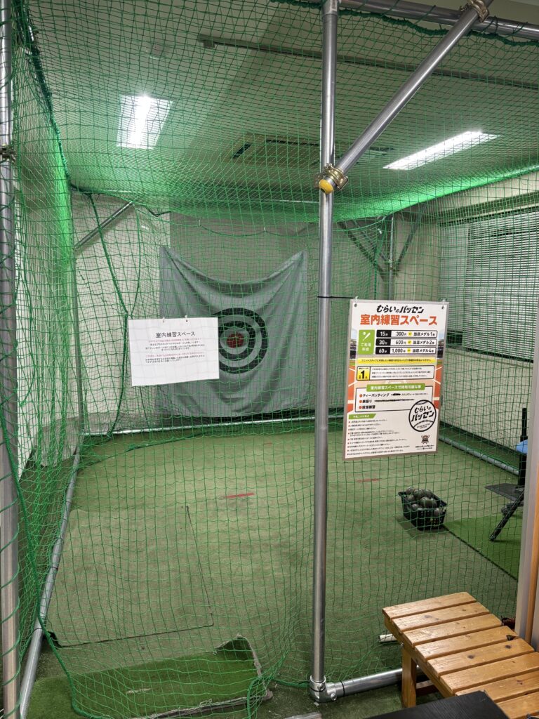 マシン打撃ができない小さなお子さんや初心者の方でも楽しめるように、バッセン屋内にティーバッティングスペース(室内練習スペース)をご用意しております。